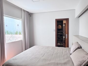 4 quartos (sendo 1 suíte com dois closets)
